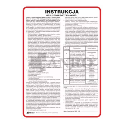 Instrukcja obsługi i eksploatacji gaśnicy pianowej 250x350mm P (IP12). Znak stosuje się w miejscach, gdzie znajdują się gaśnice pianowe, takich jak biura, magazyny, hale produkcyjne, budynki użyteczności publicznej. Znak powinien być umieszczony w widocznym miejscu, np. bezpośrednio obok gaśnicy, na ścianie lub na drzwiach pomieszczenia, gdzie przechowywana jest gaśnica. Znaki tego typu mają na celu przypominanie o zasadach bezpieczeństwa pożarowego i umożliwienie szybkiego i skutecznego działania w przypadku pożaru. Znak ma na celu zwiększenie świadomości o zagrożeniach pożarowych i zachęcenie do zapoznania się z instrukcją obsługi gaśnicy pianowej. Jest ważnym elementem wyposażenia przeciwpożarowego, który pełni kluczową rolę w zapewnieniu bezpieczeństwa. Jego wyraźna widoczność i czytelny przekaz informują o sposobie użycia gaśnicy i pomagają w zapobieganiu rozprzestrzenianiu się pożaru.