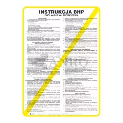 Instrukcja BHP Ogólna BHP w laboratorium 250x350 mm (IBN23/P) jest przeznaczona do umieszczenia w laboratoriach, w miejscach, gdzie pracownicy wykonują czynności związane z pracą laboratoryjną. Instrukcja powinna być umieszczona w widocznym miejscu, np. przy wejściu do laboratorium, w pobliżu stanowisk pracy, gdzie wykonywane są eksperymenty i analizy. Instrukcje tego typu mają na celu przypominanie o zasadach bezpieczeństwa. Instrukcja ma na celu zwiększenie świadomości o zagrożeniach i zachęcenie do zachowania uwagi. Jest ważnym elementem wyposażenia każdego laboratorium, który pełni kluczową rolę w zapewnieniu bezpieczeństwa. Jej wyraźna widoczność i czytelny przekaz informują o potencjalnych zagrożeniach i pomagają w zapobieganiu wypadkom.