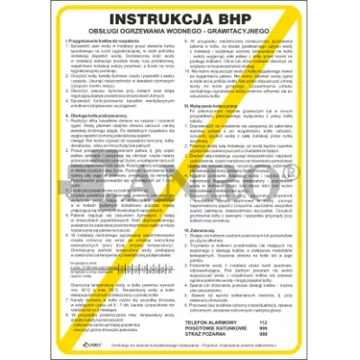 Instrukcja Obsługi ogrzewania wodnego-grawitacyjnego 250x350 mm P (IBB17). Znak stosuje się w pobliżu systemów ogrzewania wodnego-grawitacyjnego, w miejscach, gdzie użytkownicy mają dostęp do elementów systemu. Znak powinien być umieszczony w widocznym miejscu, np. w kotłowni, w pobliżu zaworów, regulatorów i innych ważnych komponentów. Znaki tego typu mają na celu przypominanie o zasadach prawidłowej eksploatacji i konserwacji.