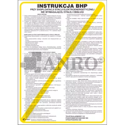 Instrukcja BHP przy eksploatacji stacji elektroenergetycznej nie wymagającej stałej obsługi 250x350 mm (IBN13/P) to tablica informacyjna, która zawiera zasady bezpiecznej pracy i postępowania w stacjach elektroenergetycznych, które nie wymagają stałego nadzoru. Ma na celu minimalizację ryzyka wypadków i urazów związanych z pracą z urządzeniami elektrycznymi. Dzięki wyraźnym i czytelnym oznaczeniom instrukcja zapewnia bezpieczeństwo pracownikom, minimalizując ryzyko porażeń prądem i innych niebezpiecznych sytuacji.