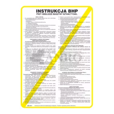 Instrukcja BHP przy obsłudze maszyny sztanctygiel 250x350 mm (IBN21/P). Instrukcja stosowana jest w pobliżu maszyny sztanctygiel, w miejscach, gdzie istnieje potencjalne zagrożenie dla zdrowia i życia pracowników obsługujących maszynę. Instrukcja powinna być umieszczona w widocznym miejscu, np. bezpośrednio przy maszynie, w pobliżu stanowiska pracy operatora. Instrukcja ma na celu przypominanie o zasadach bezpieczeństwa i prawidłowej obsłudze maszyny.