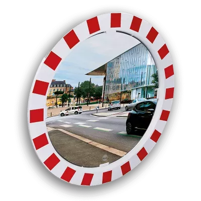 Biała rama z czerwonymi odblaskowymi taśmami czyni lustro doskonale widocznym. Lustra drogowe z biało-czerwoną ramą poprawiają bezpieczeństwo przy skrzyżowaniach na drogach publicznych. Biała rama z czerwonymi odblaskowymi taśmami czyni lustro doskonale widoczne.