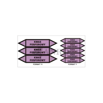 Oznakowanie rurociągów KWAS FOSFOROWY 40x120 mm, arkusz 3 szt. służy do oznaczania rurociągów w instalacjach przemysłowych, laboratoriach, zakładach chemicznych i innych miejscach, gdzie transportowany jest kwas fosforowy. Etykiety powinny być umieszczone w widocznych miejscach, w regularnych odstępach, aby zapewnić łatwą identyfikację zawartości rurociągów na całej ich długości.