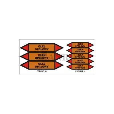 Oznakowanie rurociągów OLEJ OPAŁOWY 40x120 mm, arkusz 3 szt. (8K06/Y1/F) to zestaw etykiet informacyjnych przeznaczonych do oznaczania rurociągów transportujących olej opałowy. Etykiety te ułatwiają identyfikację zawartości rurociągów, co jest kluczowe dla bezpieczeństwa i efektywnego zarządzania instalacjami przemysłowymi. Dzięki czytelnym oznaczeniom, pracownicy mogą szybko i łatwo zidentyfikować medium przepływające przez dany rurociąg, minimalizując ryzyko pomyłek i awarii.