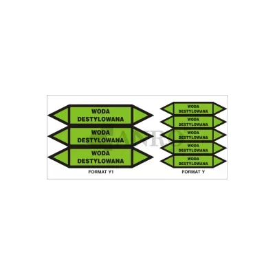 Oznakowanie rurociągów WODA DESTYLOWANA 40x120 mm (arkusz 3 szt.) to zestaw etykiet informacyjnych, przeznaczonych do oznaczania rurociągów, które transportują wodę destylowaną. Znak ma na celu identyfikację zawartości rurociągu, co jest kluczowe dla bezpieczeństwa i prawidłowego funkcjonowania instalacji. Dzięki wyraźnym i czytelnym oznaczeniom, minimalizuje ryzyko pomyłek i potencjalnych zagrożeń.