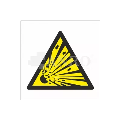 Znak BHP Ostrzeżenie przed niebezpieczeństwem wybuchu 200x200mm F (W002). Znak stosuje się w miejscach, gdzie występuje ryzyko wybuchu, takich jak magazyny substancji łatwopalnych, stacje paliw, laboratoria, czy zakłady przemysłowe. Znak powinien być umieszczony w widocznym miejscu, w pobliżu obszarów zagrożonych wybuchem. Znak ma na celu zwiększenie świadomości o zagrożeniach i zachęcenie do zachowania szczególnej ostrożności. Jego wyraźna widoczność i czytelny przekaz informują o potencjalnym niebezpieczeństwie i pomagają w zapobieganiu wypadkom.