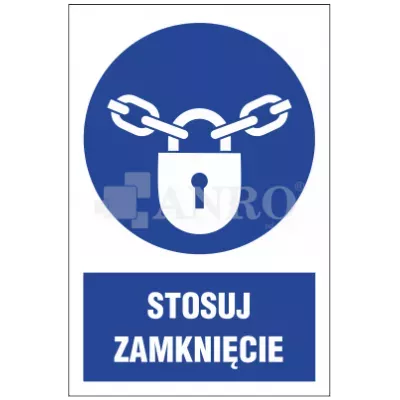 Znak BHP Stosuj zamknięcie 200x300mm F (M028/1). Znak stosuje się w miejscach, gdzie istnieje konieczność zamykania zaworów, drzwi, urządzeń lub innych mechanizmów. Znak powinien być umieszczony w widocznym miejscu, np. w pobliżu zaworu, drzwi lub urządzenia, które wymaga zamykania po użyciu. Znaki tego typu mają na celu przypominanie o ważnych zasadach bezpieczeństwa. Znak ma na celu zwiększenie świadomości o konieczności stosowania zamknięć i zachęcenie do przestrzegania zasad BHP. Jest ważnym elementem oznakowania miejsca pracy, który pełni kluczową rolę w zapewnieniu bezpieczeństwa. Jego wyraźna widoczność i czytelny przekaz informują o konieczności zamykania i pomagają w zapobieganiu wypadkom.
