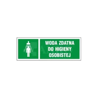Znak BHP Woda zdatna do higieny osobistej 150x450mm P (15KL) to tablica informacyjna stosowana w miejscach, gdzie dostępna jest woda zdatna do celów higienicznych. Znak ma na celu informowanie o dostępności wody przeznaczonej do mycia rąk i innych czynności higienicznych, co wpływa na poprawę standardów sanitarnych.
