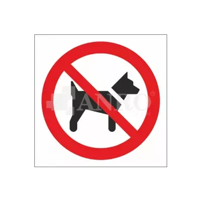 | Symbol: | Okrąg z czerwoną obwódką i przekreślającym czerwonym pasem, zawierający czarny piktogram psa (zgodny z ISO 7010) |