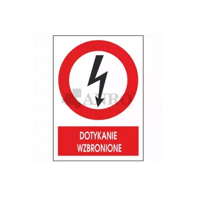 Znak elektryczny Dotykanie wzbronione 52x74mm P (6EZA). Znak stosuje się w pobliżu urządzeń elektrycznych, w miejscach, gdzie istnieje potencjalne zagrożenie porażenia prądem. Znak powinien być umieszczony w widocznym miejscu, np. na obudowach urządzeń elektrycznych, w pobliżu rozdzielnic, słupów wysokiego napięcia. Znaki tego typu mają na celu przypominanie o zasadach bezpieczeństwa.