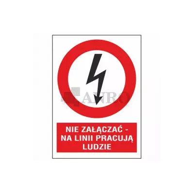Znak elektryczny Nie załączać na linii pracują ludzie 105x148mm F (4EZA). Znak stosuje się w pobliżu urządzeń elektrycznych, rozdzielni, szaf sterowniczych oraz linii energetycznych, gdzie istnieje ryzyko włączenia zasilania podczas prac konserwacyjnych i naprawczych. Znak powinien być umieszczony w widocznym miejscu, np. przy wyłącznikach, bezpiecznikach, w pobliżu miejsca pracy elektryków. Znaki tego typu mają na celu przypominanie o procedurach bezpieczeństwa. Znak ma na celu zwiększenie świadomości o zagrożeniach związanych z prądem elektrycznym i zachęcenie do zachowania ostrożności. Jest ważnym elementem oznakowania urządzeń elektrycznych, który pełni kluczową rolę w zapewnieniu bezpieczeństwa. Jego wyraźna widoczność i czytelny przekaz informują o zakazie włączania zasilania podczas prac.