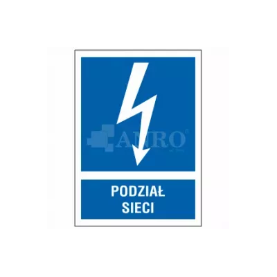 Znak elektryczny Podział sieci 148x210mm P (9EIA). Znak stosuje się w pobliżu instalacji elektrycznych, w miejscach gdzie następuje podział sieci i istnieje potencjalne zagrożenie porażenia prądem. Znak powinien być umieszczony w widocznym miejscu, np. przy szafach elektrycznych, rozdzielniach, transformatorach. Znaki tego typu mają na celu przypominanie o zasadach bezpieczeństwa w kontakcie z elektrycznością. Znak ma na celu zwiększenie świadomości o zagrożeniach związanych z prądem i zachęcenie do zachowania szczególnej ostrożności. Jest ważnym elementem oznakowania instalacji elektrycznych, który pełni kluczową rolę w zapewnieniu bezpieczeństwa. Jego wyraźna widoczność i czytelny przekaz informują o potencjalnych zagrożeniach i pomagają w zapobieganiu wypadkom.