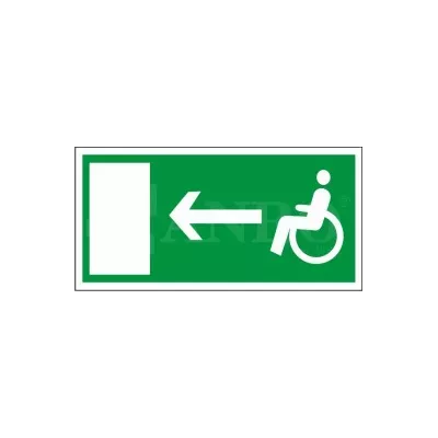 Znak ewakuacyjny Kierunek do wyjścia dla niepełnosprawnych 150x300mm PLS (43E). Znak stosuje się w budynkach użyteczności publicznej, biurach, szkołach, szpitalach i innych miejscach, gdzie przebywają osoby niepełnosprawne. Znak powinien być umieszczony w widocznym miejscu, wzdłuż dróg ewakuacyjnych, wskazując kierunek do wyjścia przystosowanego dla osób z ograniczenzeniami ruchowymi. Znaki tego typu mają na celu ułatwienie ewakuacji i zapewnienie bezpieczeństwa. Znak ma na celu zwiększenie bezpieczeństwa osób niepełnosprawnych podczas ewakuacji. Jest ważnym elementem systemu oznakowania ewakuacyjnego, który pełni kluczową rolę w zapewnieniu bezpieczeństwa. Jego wyraźna widoczność i czytelny przekaz informują o dostępnej drodze ewakuacyjnej.