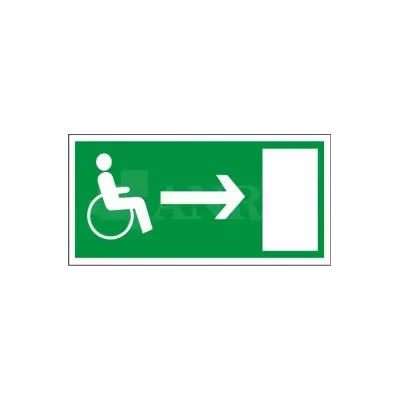 Znak ewakuacyjny Kierunek do wyjścia dla niepełnosprawnych 200x400mm PL (42E). Znak stosuje się w budynkach użyteczności publicznej, biurach, centrach handlowych i innych miejscach, gdzie istnieje ryzyko pożaru lub innego zagrożenia wymagającego ewakuacji. Znak powinien być umieszczony w widocznym miejscu, np. wzdłuż dróg ewakuacyjnych, nad drzwiami wyjściowymi dostosowanymi dla osób niepełnosprawnych, w pobliżu wind i schodów. Znaki tego typu mają na celu wskazywanie najbezpieczniejszej drogi ewakuacji dla wszystkich osób, ze szczególnym uwzględnieniem potrzeb osób z niepełnosprawnościami. Znak ma na celu zwiększenie świadomości o dostępnych drogach ewakuacyjnych i zachęcenie do szybkiej i bezpiecznej ewakuacji. Jest ważnym elementem oznakowania budynku, który pełni kluczową rolę w zapewnieniu bezpieczeństwa. Jego wyraźna widoczność i czytelny przekaz informują o potencjalnych zagrożeniach i pomagają w zapobieganiu wypadkom.
