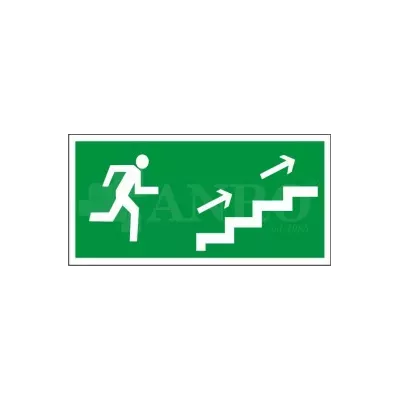 Znak ewakuacyjny Kierunek do wyjścia schodami w górę 150x300mm FS (5E) to tablica informacyjna wskazująca drogę ewakuacyjną w przypadku zagrożenia. Ma na celu ułatwienie szybkiej i bezpiecznej ewakuacji z budynku. Dzięki wyraźnym i czytelnym oznaczeniom znak zapewnia bezpieczeństwo użytkownikom, minimalizując ryzyko paniki i zagubienia w sytuacji awaryjnej.