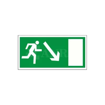 Znak ewakuacyjny Kierunek do wyjścia w dół w prawo 150x300mm PL (46E). Znak stosuje się w budynkach użyteczności publicznej, takich jak szkoły, szpitale, biura, centra handlowe itp. Znak powinien być umieszczony w widocznym miejscu, np. na ścianach, drzwiach, sufitach, wzdłuż ciągów komunikacyjnych. Znaki tego typu mają na celu wskazywanie kierunku do najbliższego wyjścia ewakuacyjnego. Znak ma na celu zwiększenie świadomości o drogach ewakuacyjnych i zachęcenie do szybkiej reakcji w sytuacji zagrożenia. Jest ważnym elementem systemu bezpieczeństwa pożarowego, który pełni kluczową rolę w ochronie życia i zdrowia ludzi.