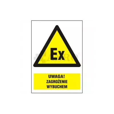 Znak informacyjny Uwaga! Zagrożenie wybuchem z podpisem 220x300mm F (32O/1). Znak stosuje się w miejscach, gdzie występuje ryzyko wybuchu, np. w zakładach chemicznych, magazynach substancji łatwopalnych, stacjach benzynowych, lakierniach. Znak powinien być umieszczony w widocznym miejscu, np. przy wejściu do strefy zagrożonej wybuchem, w pobliżu urządzeń i instalacji, które mogą być przyczyną wybuchu. Znak ma na celu zwiększenie świadomości o zagrożeniach i zachęcenie do zachowania uwagi. Jest ważnym elementem oznakowania stref niebezpiecznych, który pełni kluczową rolę w zapewnieniu bezpieczeństwa. Jego wyraźna widoczność i czytelny przekaz informują o potencjalnych zagrożeniach i pomagają w zapobieganiu wypadkom.