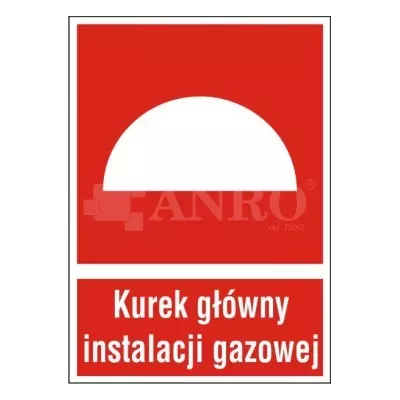 Znak ppoż Kurek główny instalacji gazowej 200x300mm PL (20P) to tablica informacyjna wskazująca lokalizację kurka głównego instalacji gazowej. Znak ma na celu ułatwienie szybkiego odcięcia dopływu gazu w sytuacji awaryjnej lub w przypadku pożaru.