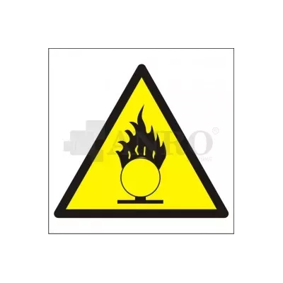 Znak ppoż Niebezpieczeństwo pożaru Materiały utleniające 200x200mm PLS (15P). Znak stosuje się w miejscach, gdzie składowane są materiały utleniające, np. w laboratoriach, magazynach chemicznych, zakładach produkcyjnych i innych miejscach, gdzie obecne są substancje mogące podtrzymywać palenie. Znak powinien być umieszczony w widocznym miejscu, np. przy wejściach, w pobliżu miejsc, gdzie składowane są materiały utleniające.