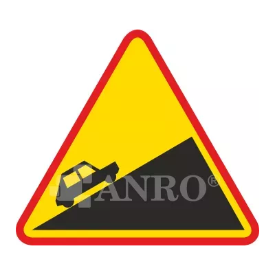 Znak drogowy A-23 ma kształt trójkąta równobocznego z czerwonym obramowaniem i żółtym tłem, na którym umieszczony jest czarny symbol stromego podjazdu.